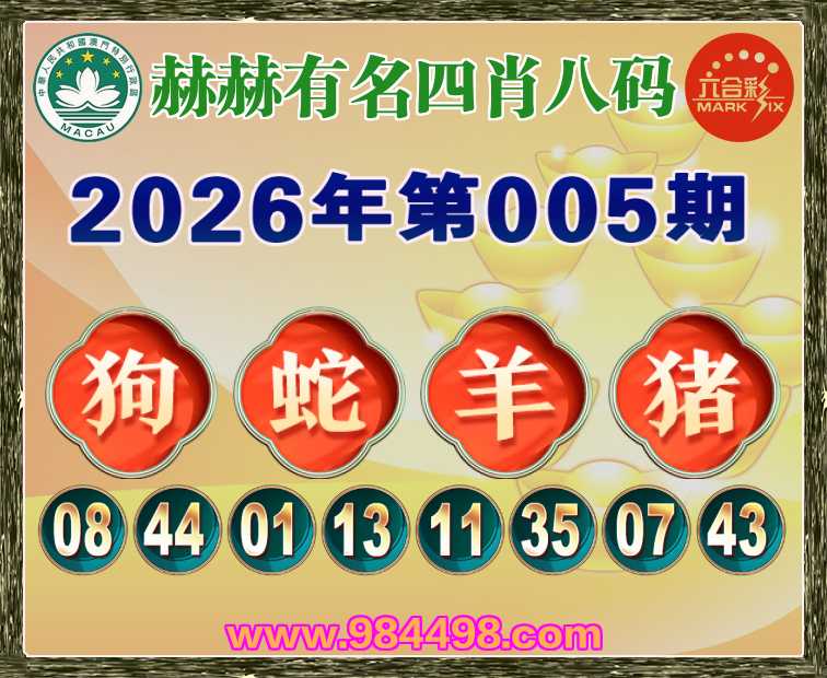 005期: 『赫赫有名』 四肖八码【狗蛇羊】开:猪43