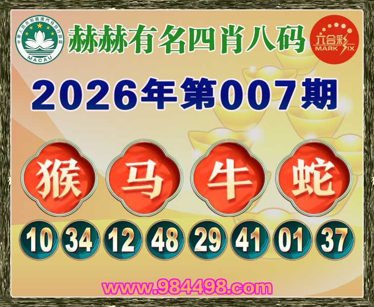 007期: 『赫赫有名』 四肖八码【猴马蛇】开:牛41